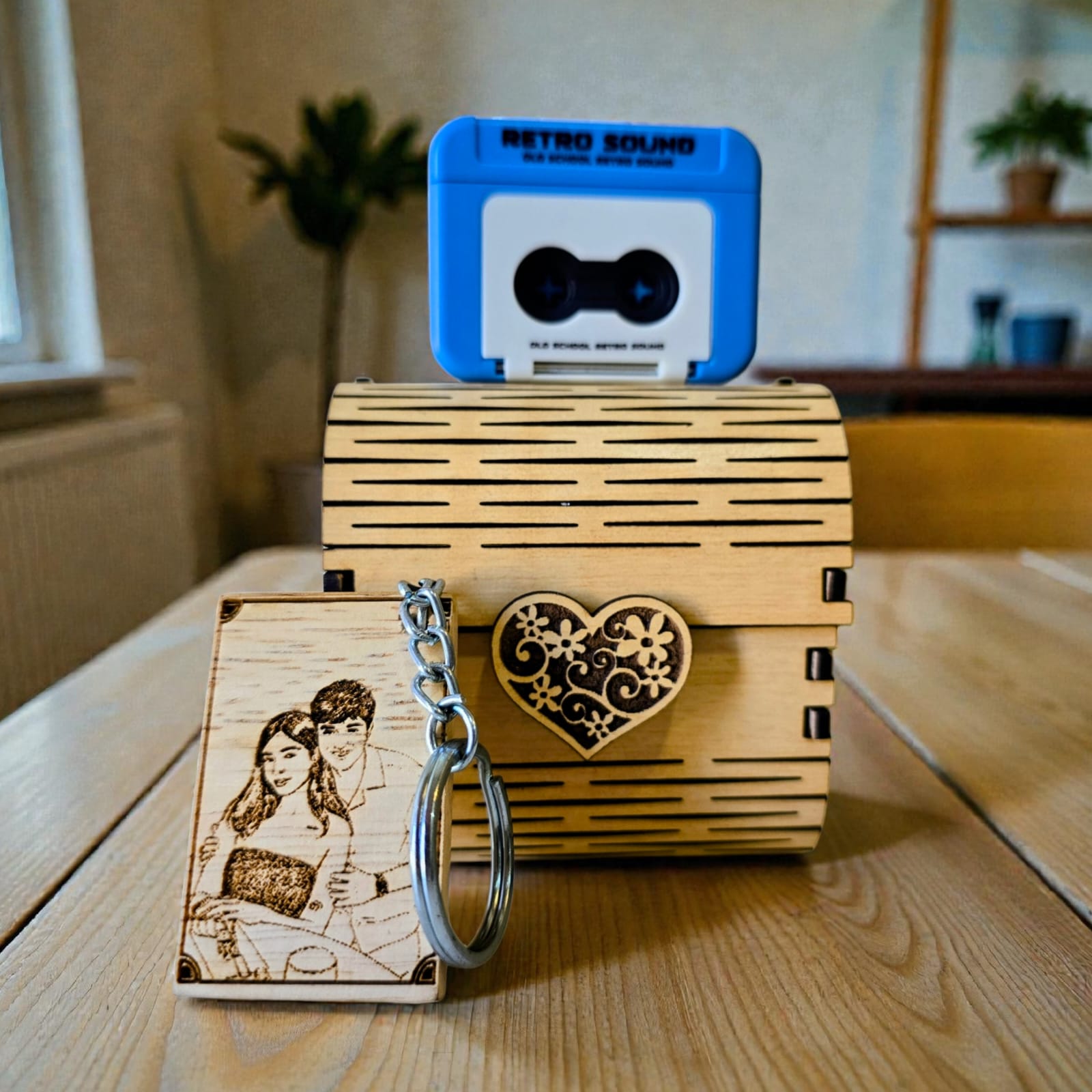 Personalized Voice Message Gift Box with Customized Wooden Keychain (Cash on Delivery not available)
