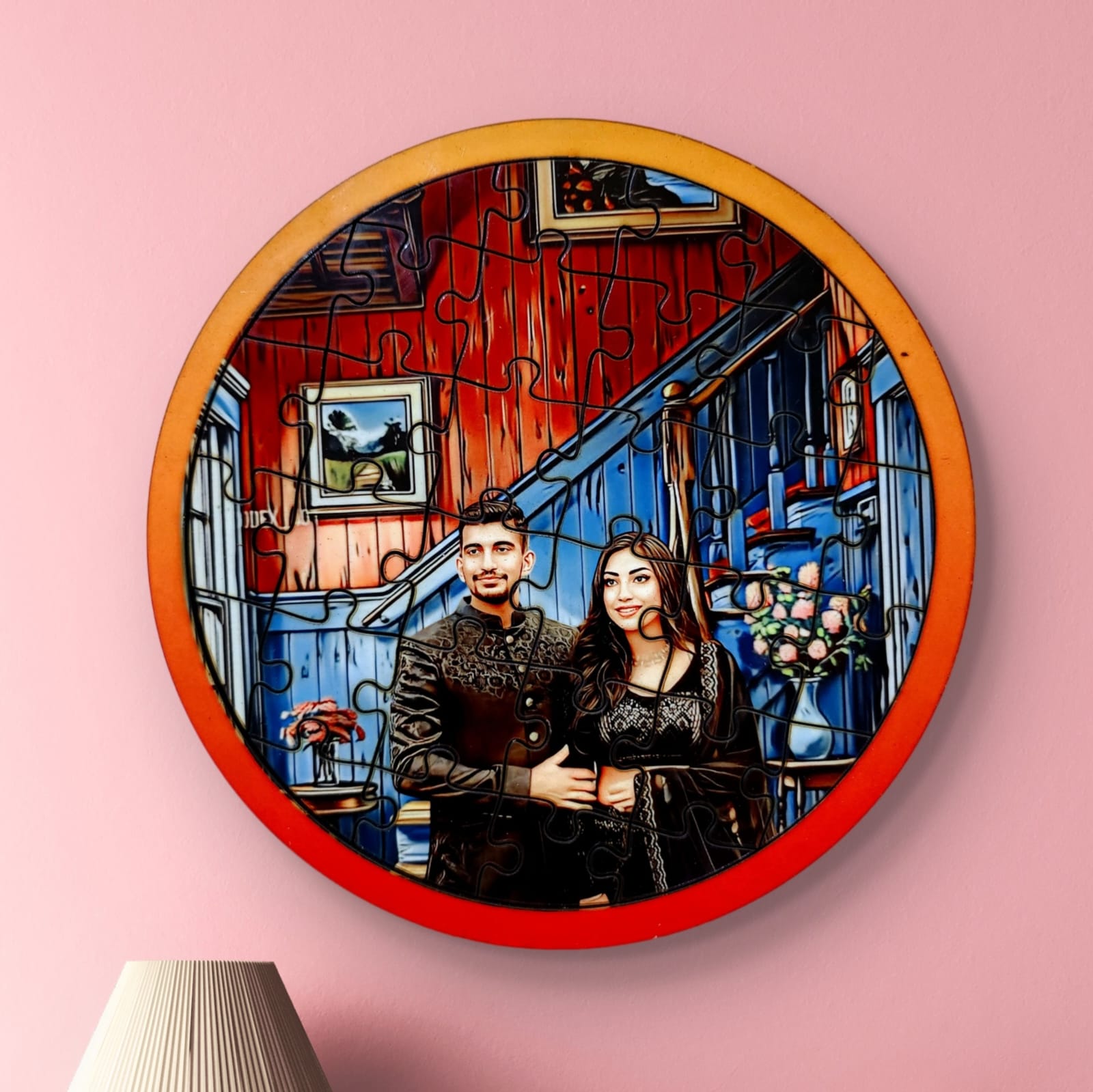 Personalized Puzzle Painting- Vintage Retreat (Circle) | Wooden Puzzle